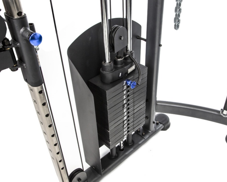 - AESTHETICS: Easy Install End-Caps, All Black Hardware, Updated Laser-Cut Workout Guide Plate, Blue Anodized Aluminum Selector Pins and Pop-Pins and Blue Single Handle Accents