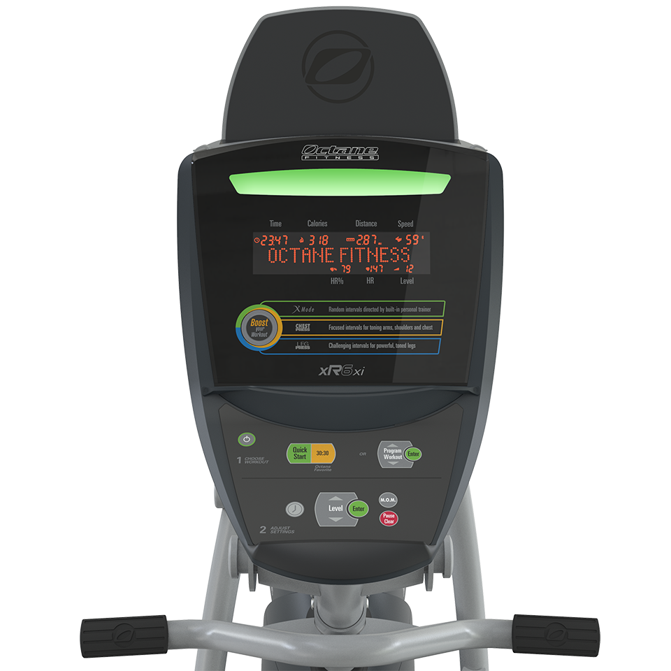 With heart rate sensors and Smart Light technology, the XRide xR6xi Recumbent Elliptical combines all the benefits of traditional standing elliptical machines with the comfort of a seat with PowerStroke technology and resistance training to engage more muscles, burn more calories and get more results than any other seated machine. Equipped with a variety of programs, multiple resistance levels, and Octane’s Workout Boosters, the xRide challenges beginners to athletes. Learn more about our XRide xR6xi Recumbent Elliptical.