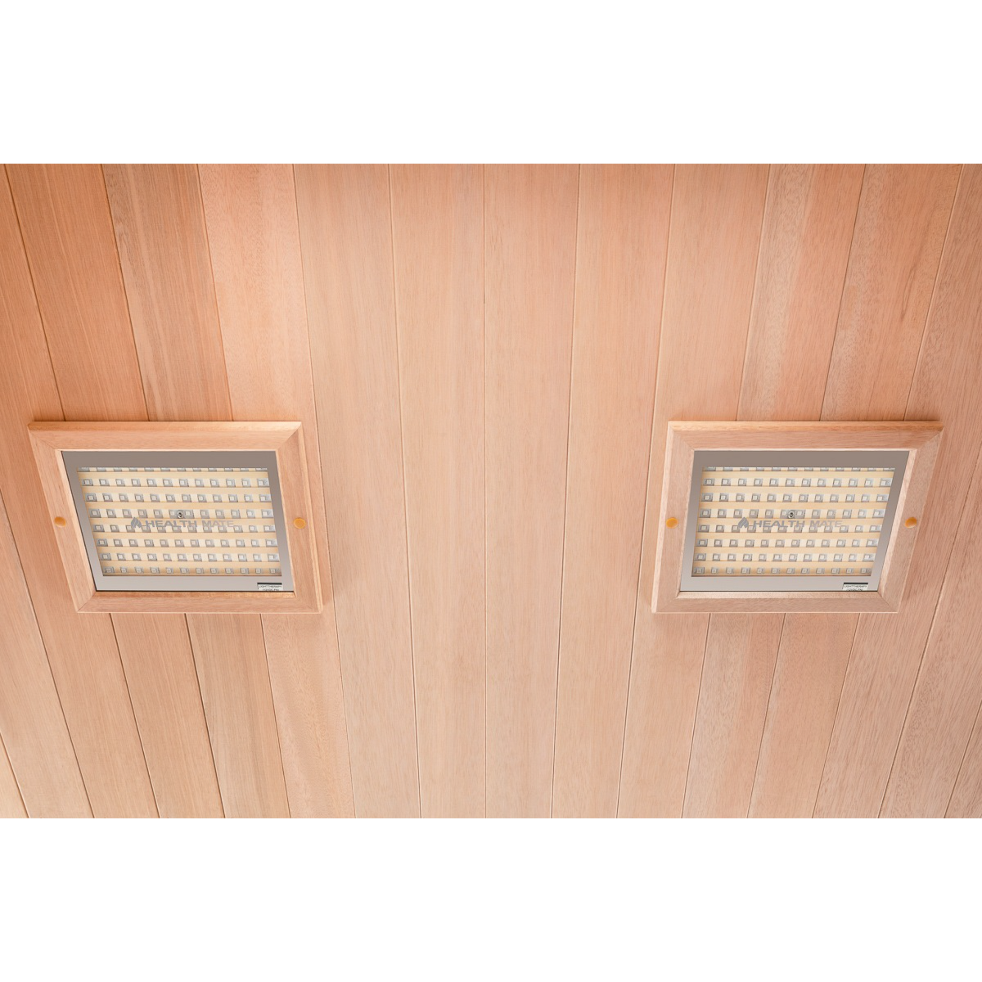 The Health Mate Restore Elevated Health infrared sauna is a top-of-the-line model, offering improved health and wellness benefits alongside a luxurious design ideal for two to four people. It features an impressive array of amenities, including our patented Tecoloy™ mid and far-infrared heaters, a 96-diode near-infrared LED panel, glass windows, exterior lighting, an ergonomic seat, and much more. With its spacious bi-level seating and 16-heater full-spectrum setup, this luxurious model from Health Mate is the epitome of quality in terms of infrared saunas.