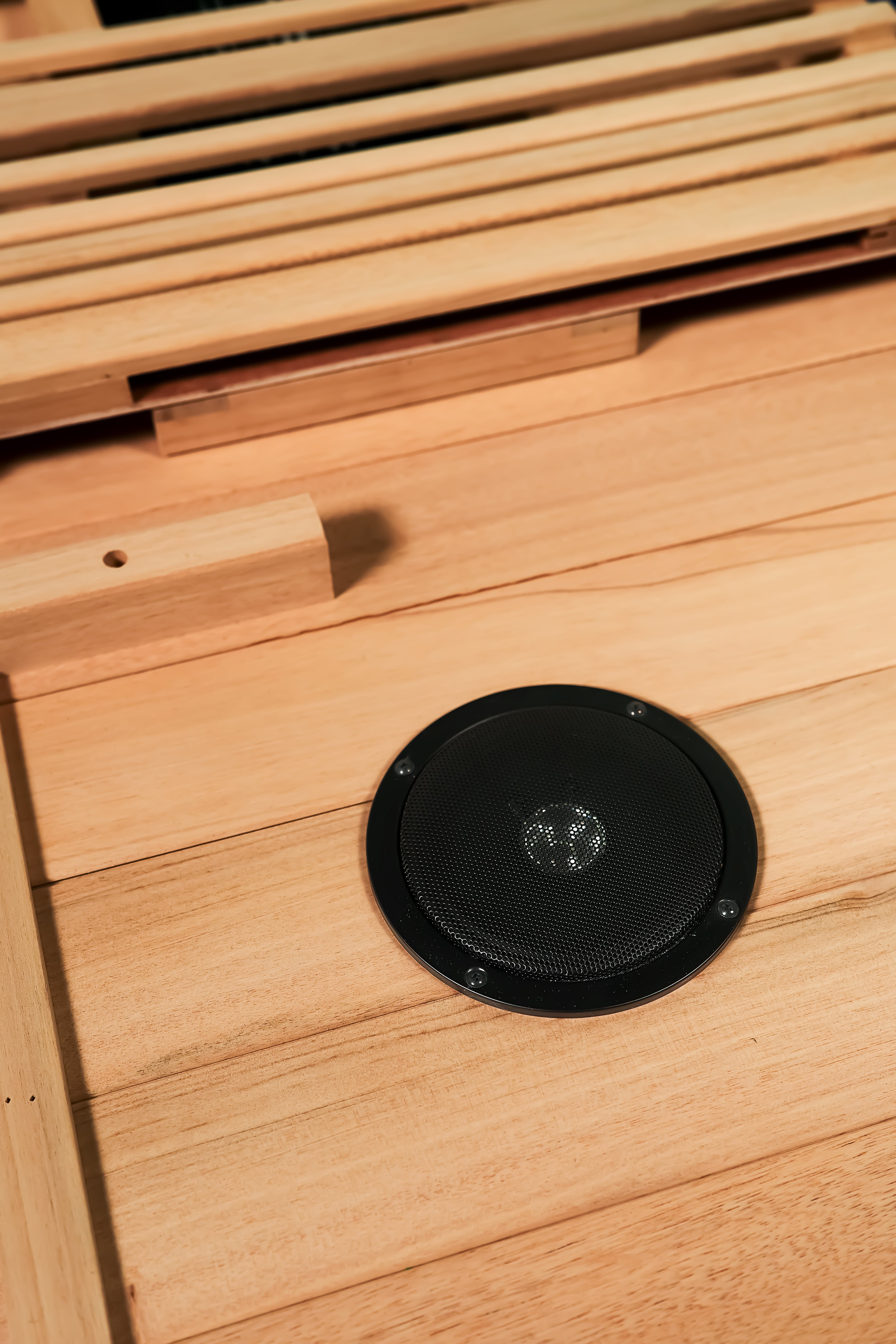 Seamlessly control your sauna’s settings using a professional-grade controller connected via app. You can even set your sauna to turn on in advance from anywhere. Immerse yourself in relaxation with a built-in, high-performance Bluetooth audio system that pairs effortlessly with your smartphone.