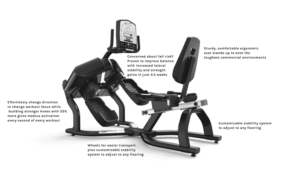 You don’t have to stand to benefit from the world’s most effective cardio! This zero- impact machine is built for full commercial use and helps to improve strength, balance and cardiovascular fitness while it reduces knee and hip pain.
