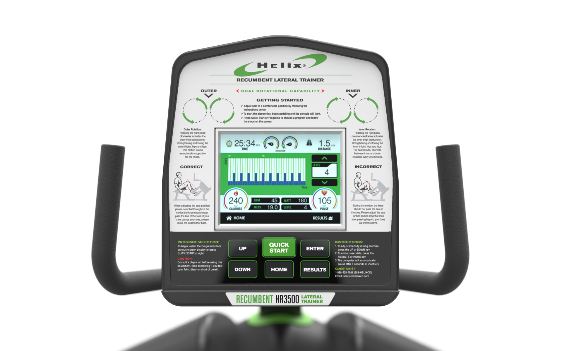 Like all Helix models, the HR3500 is clinically shown to provide increased muscle activation and fat burning. It targets the muscles that traditional cardio ignores, such as the obliques (55% more activation), the inner thighs (42% more activation ) and the outer thighs (50% more activation) and has been shown to improve balance by 59% in under one month. *