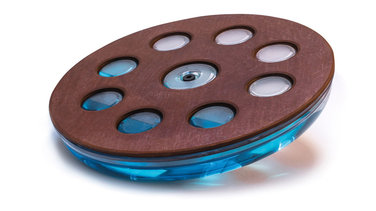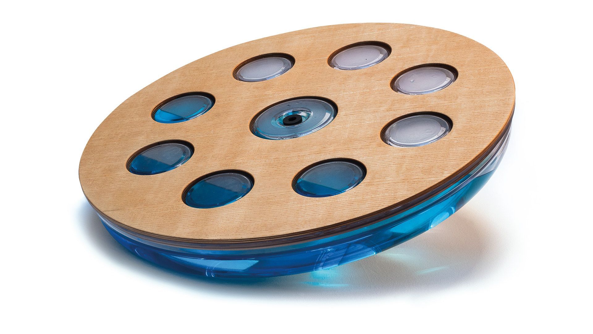 A new kind of balance board - the patented combination of classic balance training with the added element of water for challenge.