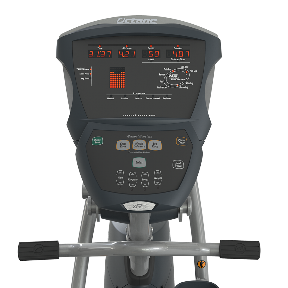 The xR6c X-Ride home recumbent elliptical combines all the benefits of traditional standing elliptical machines with the comfort of a seat with PowerStroke technology and resistance training to engage more muscles, burn more calories and get more results than any other seated machine. Equipped with a variety of programs, multiple resistance levels, and Octane’s trademark Workout Boosters, the XRide recumbent elliptical challenges beginners to athletes. Learn More about this XRide recumbent elliptical. This particular model is the XRide xR6C Recumbent Elliptical.