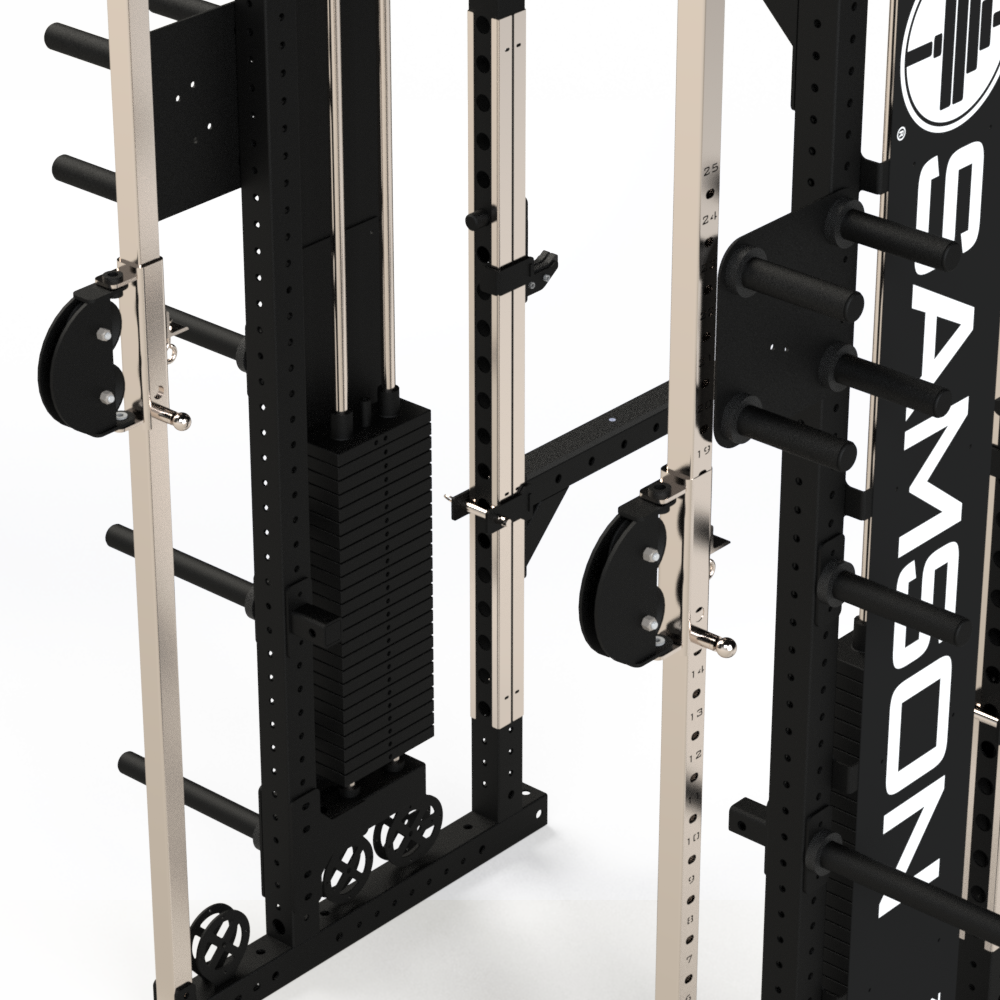 - Racks are sold with J-Cups, Safety Catches, and Standard Pull Up Grip Variation. **Graphic Shields, Bumper Plates, and Barbells are shown sold separately.