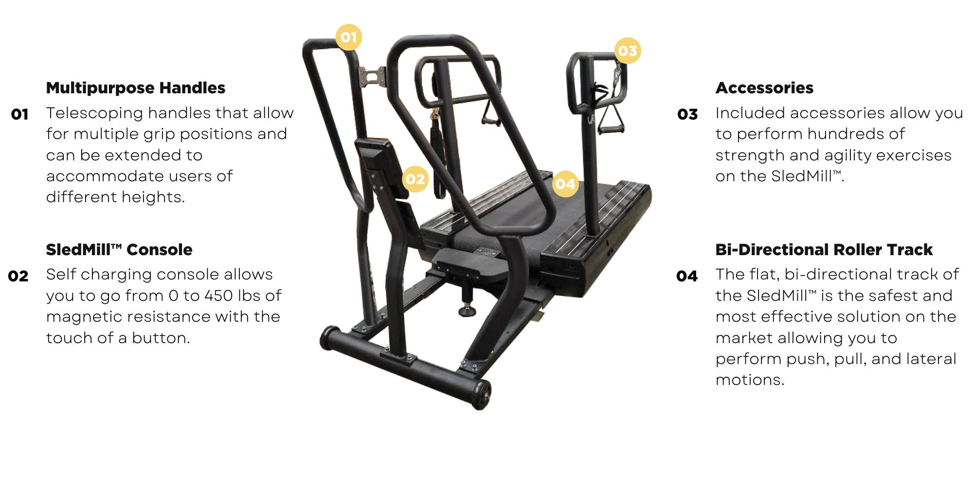 Sled Training is one of the most effective exercises today. The patented SledMill™ system is one of the most popular HIIT Products on the market. It’s a total body workout that improves strength, stamina, speed, and power. Get all the benefits of sled training and the ability to perform hundreds of exercises in only 8 feet of space!