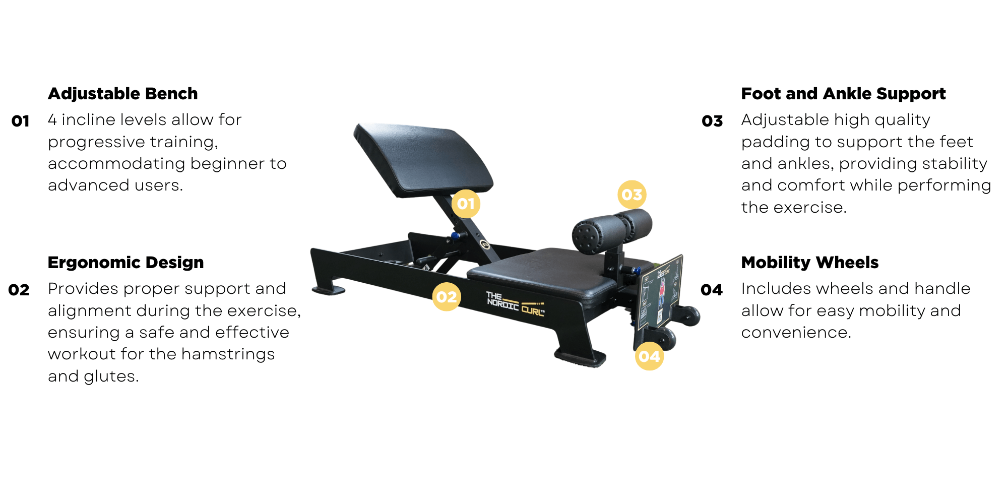 The Nordic Curl™ is designed to strengthen, build and develop the hamstrings and glutes in a safe, effective way. The ergonomic design allows you to perform the perfect nordic curl safely, leveraging the weight of your body. The PATENT PENDING DESIGN features an adjustable Chest Pad which allows users to work their way up to the full range of motion. There are 4 levels of adjustment making it perfect for beginners or advanced athletes.