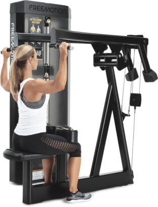 The EPIC Selectorized Lat Pulldown/High Row comfortably isolates the lower body so users can target the resistance to the back. Thigh pads are contoured for fit and padded for comfort. The arms independently move in a natural, diverging motion and multi-grip handles let you train multiple high pull exercises. Arms are also counterweighted for fluid motion.